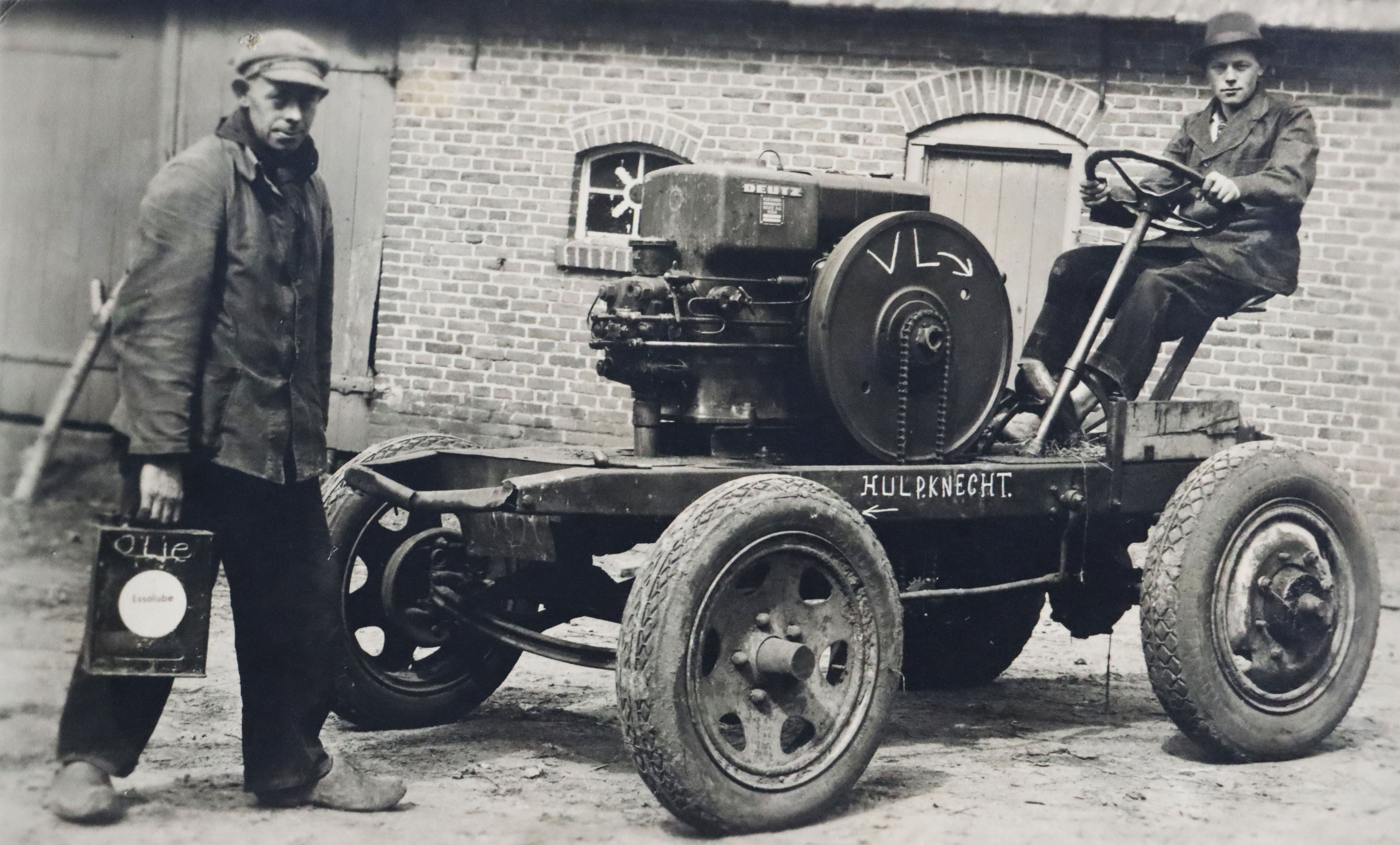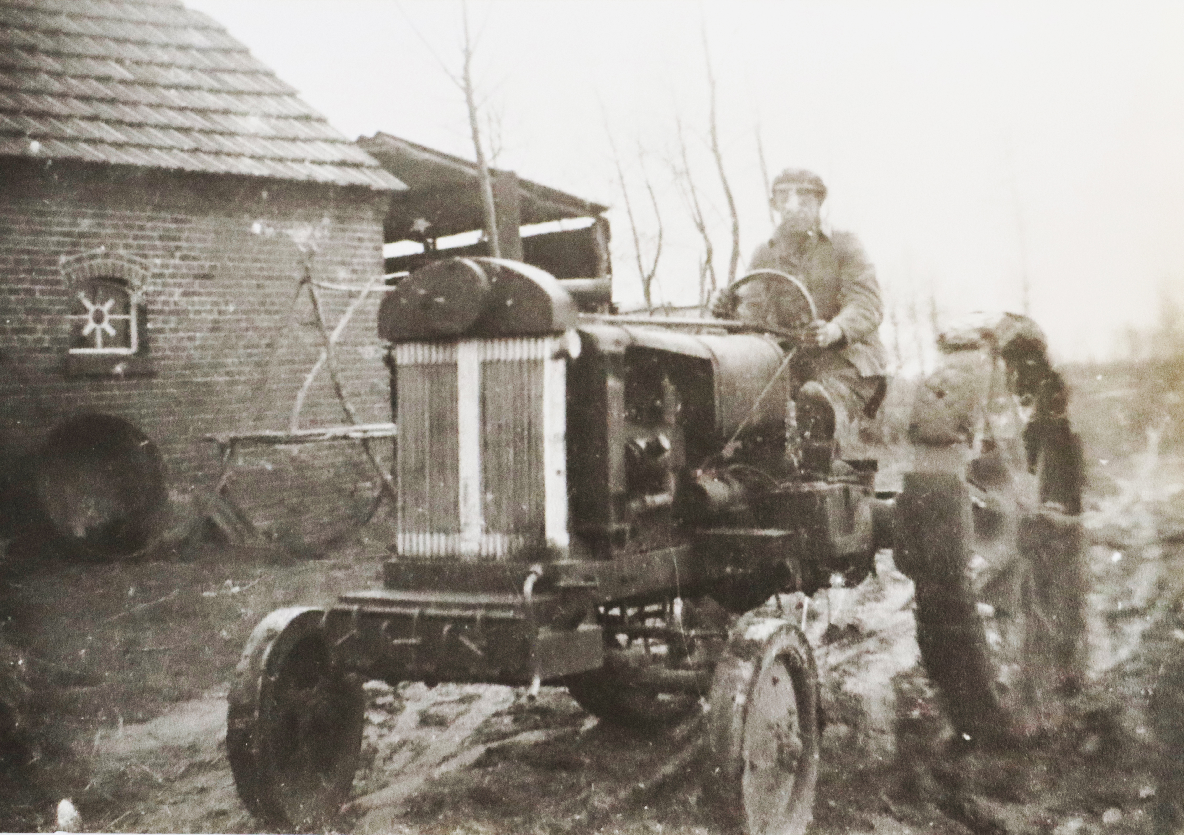 Verbruggen. Ties zit op de rechtse foto op de tractor. De
